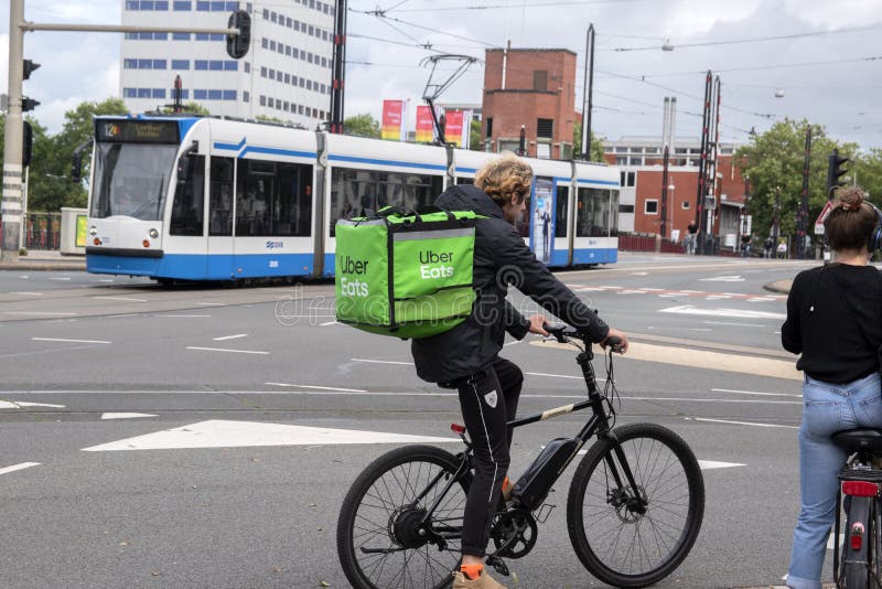 Uber Eats Bicycle Courier at Amsterdam the Netherlands Editorial ![]()